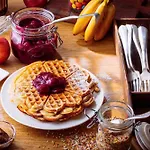 Ontbijt was uitgebreid, beschikbaar voor 13 euro per persoon.